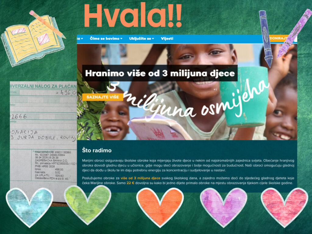 I ove korizme učenici naše škole uključili su se u projekt Marijinih obroka “Za obrok i znanje kroz malo odricanje” te na taj način za sljedećih godinu dana osigurali hranu i obrazovanje za 22 djece koja su u kritičnoj potrebi. Naša donacija (496€) usmjerena je na kuhinju u Malaviju koja nosi ime “Marijini obroci Hrvatska” i u njoj 1289 djece svakog školskog dana prima topli obrok.